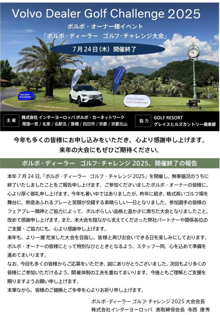 ボルボ・ディーラー ゴルフ・チャレンジ 2025、大会終了のご報告